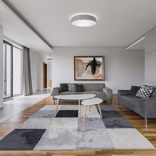 レーヴは、デンマークを代表するテキスタイルブランド クヴァドラ社のRemix2を採用したシンプルで上品なシーリングライト。テキスタイルを透過する側面からのやわらかな光と、下面アクリルを通す均一で明るい光が室内を豊かに満たします。薄型設計で圧迫感が無く、リビングだけでなく個室にも最適。寝室では、リモコンによる調光・調色機能で良質な眠りへと導きます。