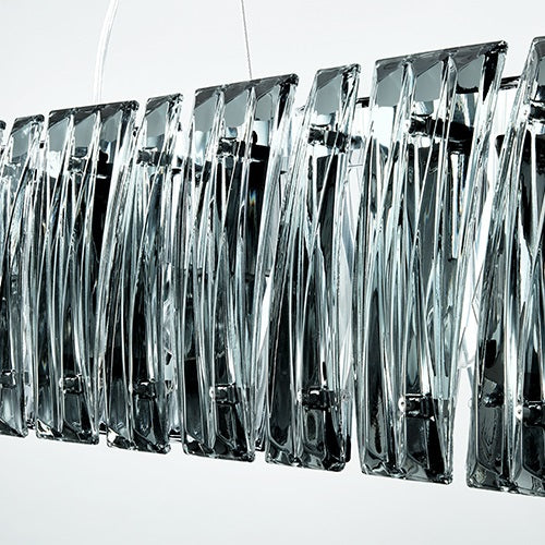アイスクルは、不定形にデザインされた2種のガラスを組み合わせ形つくられたシャンデリアです。光煌めくクリアクリスタルのシリーズに、スモークグレーのカラーバリエーションがラインナップ。華美過ぎず大人の空間を演出します。