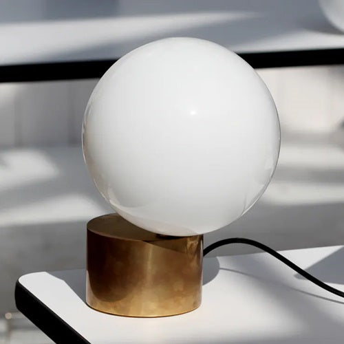 2本の棒とガラスの球体からなる、シンプルな構造に見える作品ですが、実際には100を超える部品からなる、精密に設計されたデザインです。黒く見えるカラーも塗装されたものではなく、真鍮にパティネーション処理を施すことで着色※しています。英国にある工房で、職人が一つひとつ生産しており、製造できる数にも限りがあります。高い品質を保つために製造にも時間を要するため、値段も高くなってしまいます。