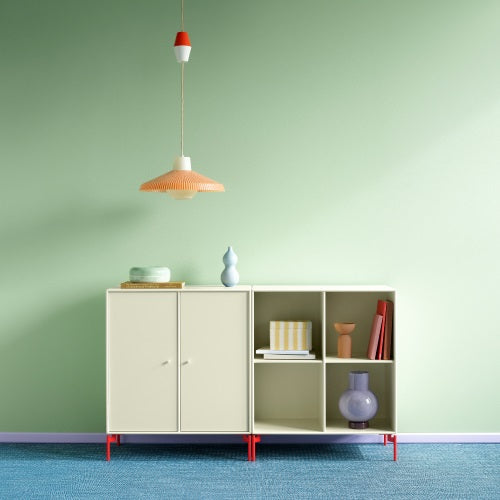 モンタナ・フリーは、空間に合わせて装いを変える収納家具。変化をテーマにデザインされ、バリエーション豊かなシェルフと、オプションのテキスタイルパネルを組み合わせ個性的な収納を設けることができます。曲線的なシルエットは無骨になりがちなストレージに優雅な印象を与えています。