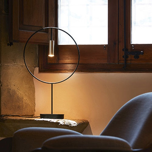 トレンド感のあるミニマルな幾何学フォルムをベースとしたLEDテーブルランプ、レヴォルタ。レトロ&モダンなアート作品のような佇まいで、空間を引き締めます。