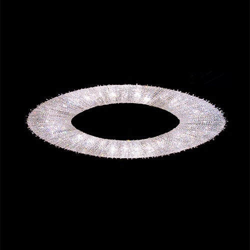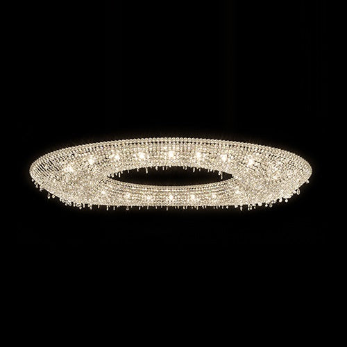 環礁(環の形をした珊瑚礁)の意味を持つアトールは、高品質なボヘミアクリスタルビーズを贅沢に使用した楕円形のシャンデリアです。ボリュームに変化を持たせ、見る角度により表情が異なります。
