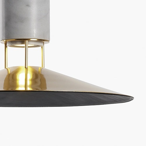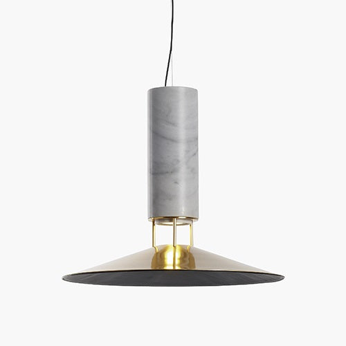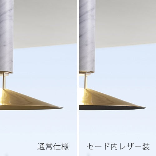 リバウンドは大理石と真鍮製のセードによる特別な存在感が魅力のペンダント照明です。天然のマーブル模様は、ハイエンドなインテリアに調和し、空間に統一感と、気品ある雰囲気をもたらします。セードの仕様に特徴があり、通常の真鍮に加え、レザーが内張されたバージョンも備えています。レザーの質感は、光の表情に変化を与え、見る角度で異なる印象を演出します。