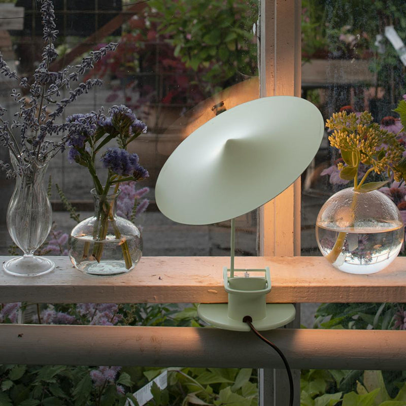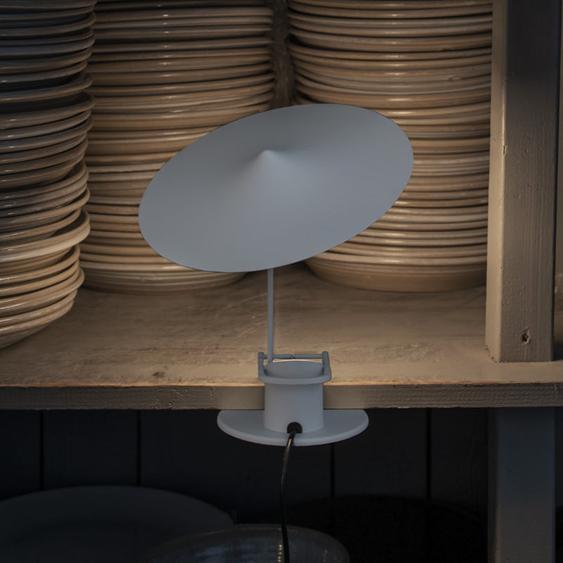 クランプ機構を備えたベースにはCOB LED光源が埋め込まれており、温かみある白色光を放ちます。この光源は製品上部にあるシェードに反射し、周囲を柔らかく照らすことができます。このシェードはマグネット式ボールジョイントにより柔軟に可動し、光の方向を変えることもできます。