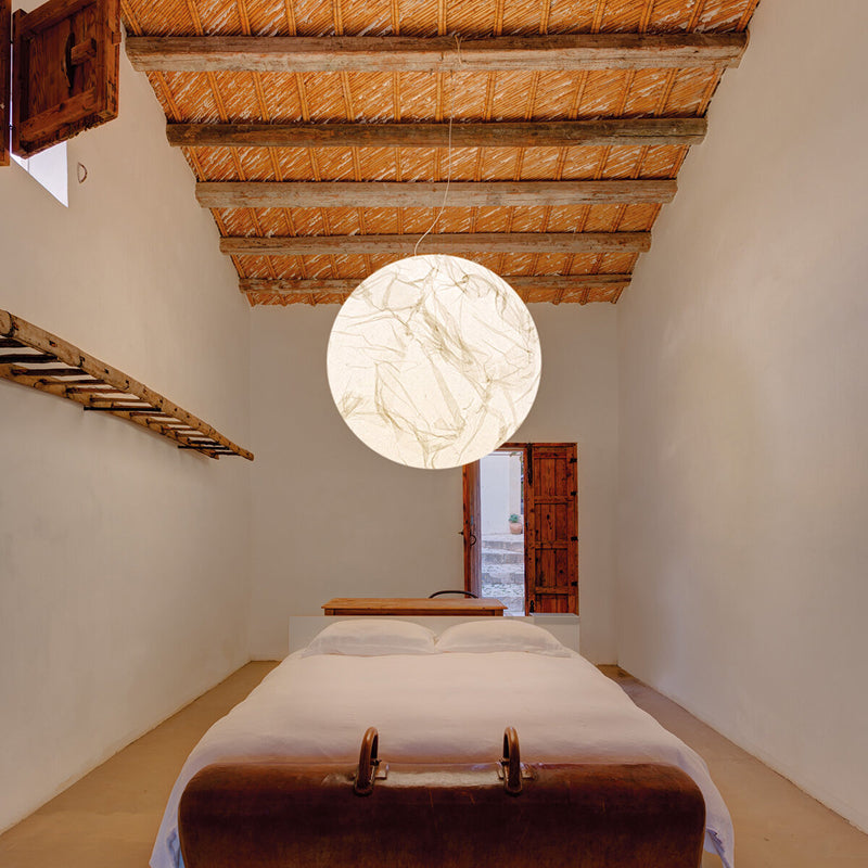 文字通り月を思わせるムーンは、ブランド最大のヒット作。普遍的な球形のシェードは、職人の手仕事から生まれています。特別な紙素材が醸し出す繊維の表情は、クレーターを思わせ、満月のような存在感を感じさせる灯りを形づくります。