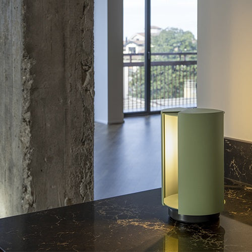 2枚の線形柱状の金属板を回転させ、 カメラの絞りのように必要な光量を調節します。 調光機構が存在していなかった1950年代当時、画期的な機構として発表。それは、1967年にコンパッソ・ドーロ賞を受賞したヴィコ・マジストレッティによる名作 Eclisse(エクリッセ)発売の10年近く前のことです。