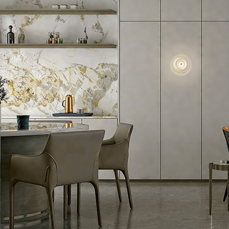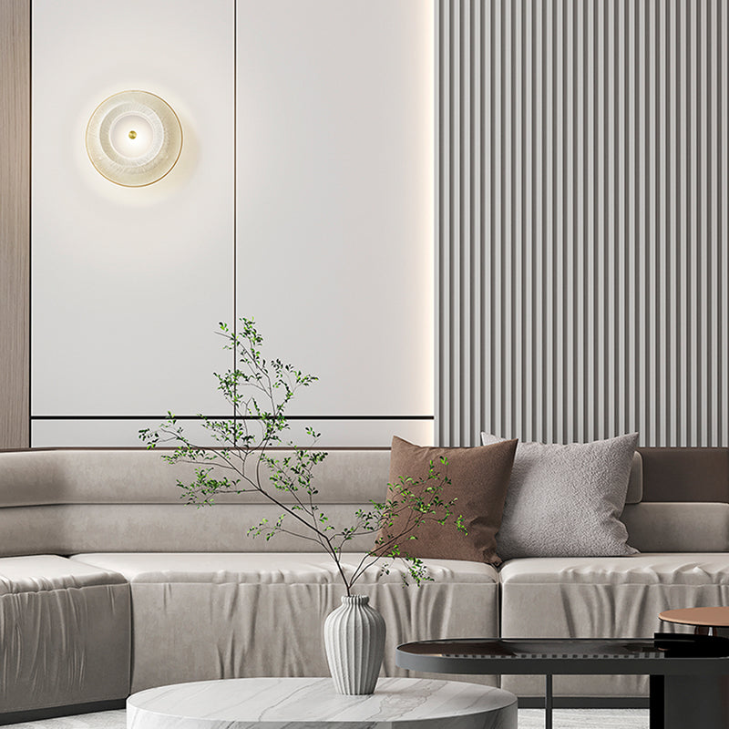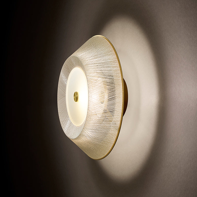 黄昏時の空の色合いを表現したトワイライトシリーズのブラケット。使いやすいコンパクトなサイズでありながら、紡がれたシェードの繊維1本1本に輝くクリスタルのような光がワンポイントで空間を上品に彩ります。