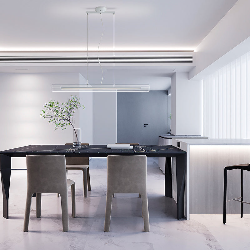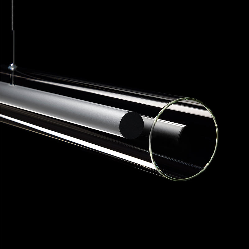 フラックスは、透明感ある、あふれる輝きが空間を彩るペンダント。高品質のバイレックスガラスのチューブの中でLEDの光が流れるように直進し、スタイリッシュな雰囲気を演出します。
