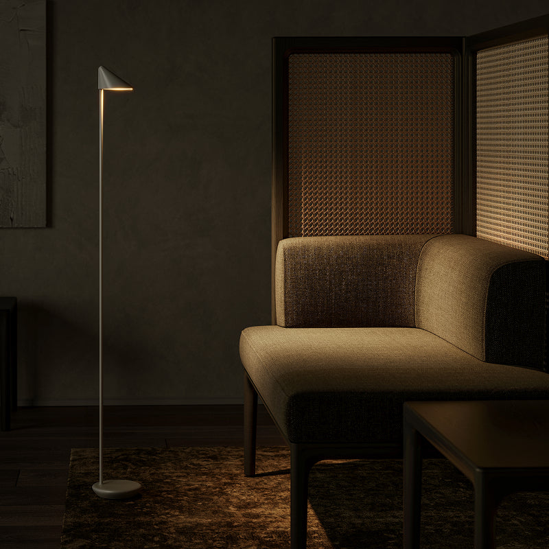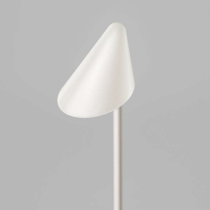その特徴は斜めに切り取られたシェードと60度角の配光にあります。この設計によって、手元だけに穏やかな光のスポットを生み出し、視界と思考のノイズを取り払います。