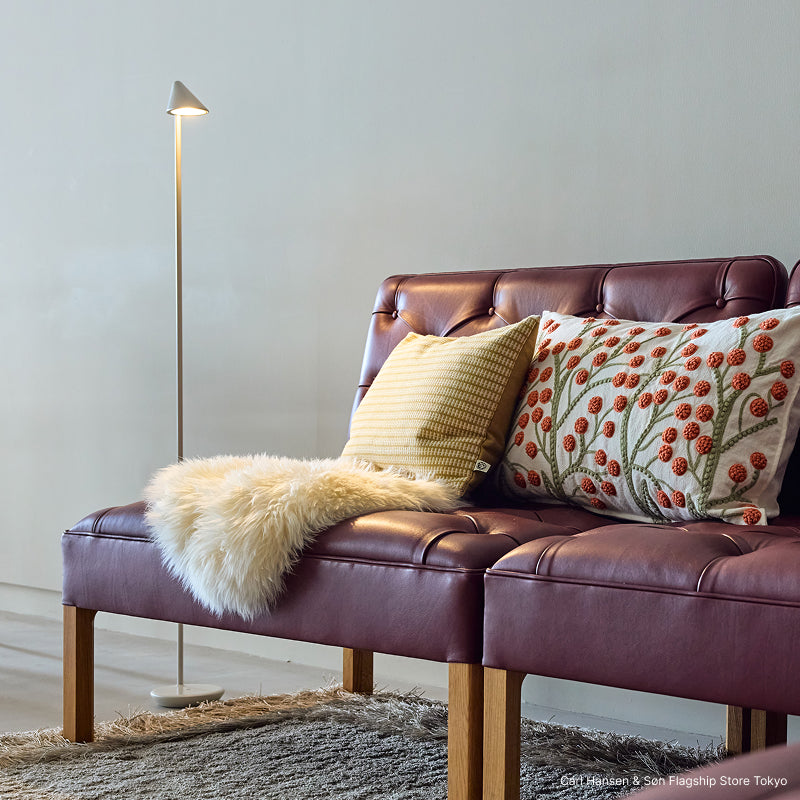 デスクライトは、作業時だけでなく、ベッドサイドや食卓へ自由に持ち運んでは、その時々に応じた「個」の空間を作り出すことができます。フロアスタンドは、ソファのそばに置けば読書する手元のをA3サイズの範囲で照らしてくれます。