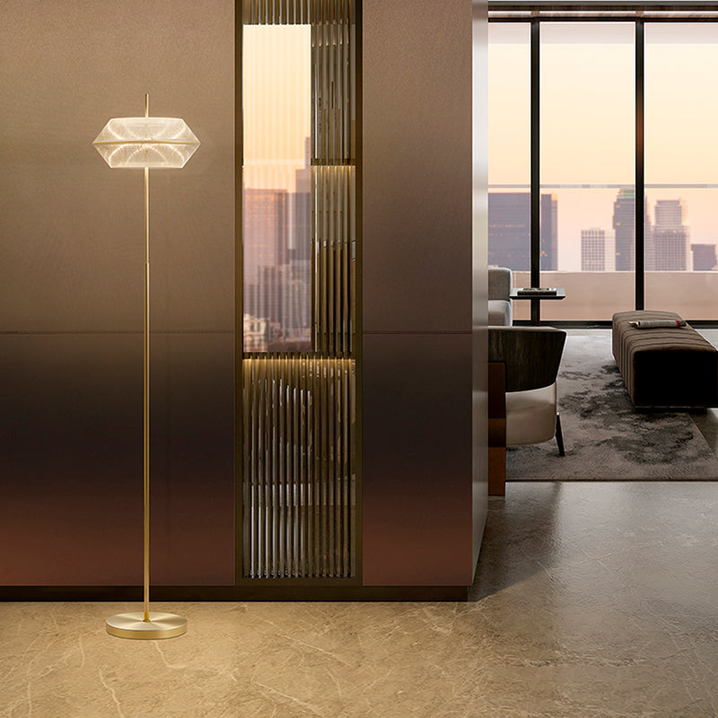 黄昏時の空の色合いを表現したトワイライトシリーズのφ300フロアスタンド。優雅さを追求したスケールとトワイライトシリーズ特有の情緒的な光が、1日の終わりに夕景を見るような穏やかな時間を演出します。