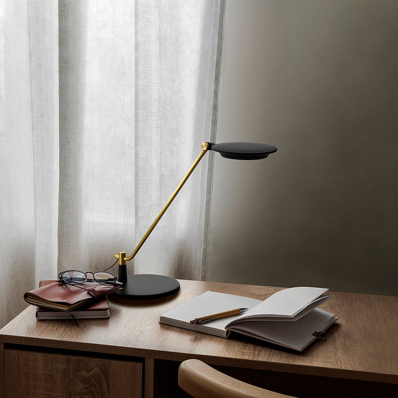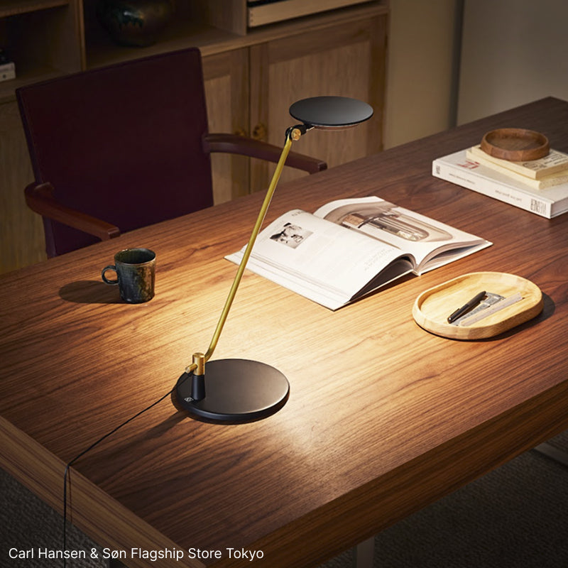 目が疲れにくく、目に優しい、LEDデスクライトとの理想形して好評を得ているレビオに、上品な質感の新仕様が登場。真鍮パーツが洗練された雰囲気を演出します。
