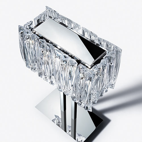 1枚1枚が重量のあるクリスタルガラスを贅沢に使用。ゴージャスな光のオブジェとして空間のアクセントとなります。シーリングやスタンドとのコーディネートも可能です。