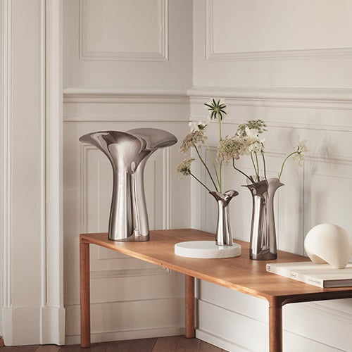 花のつぼみがほころび、花びらが姿を見せる瞬間にインスピレーションを得て誕生したブルーム ボタニカ。粘土を用いて手でモデル作りをしたことで、ステンレススティールという人工的な素材にも、有機的な温かみを感じさせてくれます。