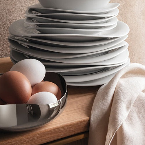 ステンレススティールで造られた、ソフトなカーブで流動性を描くミディアムサイズのボウル。躍動感のある魅力的なフォルムで、ディナーパーティーでも存在感を放ちます。サラダ、ライス、野菜にぴったりのサイズで、特に同コレクションの他のボウルと組み合わせてご使用いただくことで、食事のひとときにコンテンポラリーなテイストをプラスします。