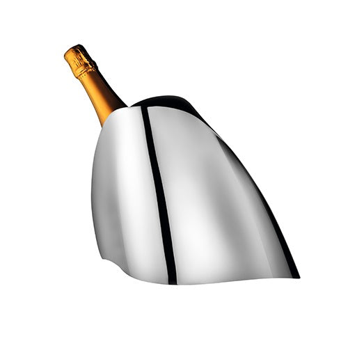 楕円形の差込口が有機的なフォルムで、容易に出し入れしやすい形でありながら、ボトルを完ぺきな角度で支え、シャンパンボトルの冷たさを逃しません。テーブルに美しく映えるポリッシュステンレススティールです。