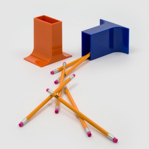 エンツォ・マーリによるジオメトリックな曲線と直線のバランスが美しいペン立て。しばらく廃盤になっていましたが、2017年に復刻されました。ミニマルなデザインと鮮やかな色彩は個性的なデスクを演出します。