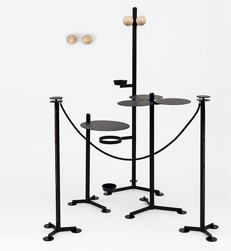 基本となる台座には、ユーザーのニーズに応じた形状に調整できる調整機構があり、状況や環境に合わせて変化させることが可能です。リチャード・ハッテンは同じ鉢から芽が出て、様々な形に成長する植物をイメージしています。フックパーツとして使われる球体はエンツォ・マーリのスクリーン作品にあるクローバーの形状にヒントを得てデザインされています。