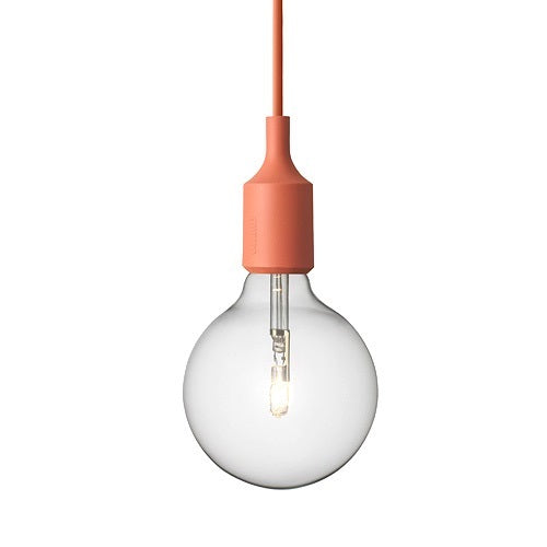 E27は、裸電球とシリコングムで覆われたソケットで構成されています。裸電球そのものの美しさを生かしたそのシンプルなフォルムは、ロマンチックでありながら現代的な美しさと強いオブジェクトを感じます。単色でも多色の組み合わせでも、1灯のみでも多灯吊りでも美しく映えるため、住宅だけでなく、あらゆる用途や 空間で幅広く使えます。