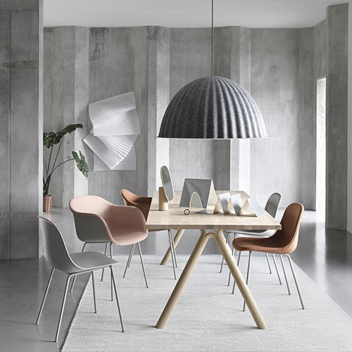 このアイキャッチなペンダントランプは、リサイクルされたプラスチックフェルトを使って作られています。大きなシェードの周辺に空間ができることで、雑音を吸収して音の問題を改善します。広々したパブリックスペースやレストラン、教育施設、音の問題の改善が必要な場所など、あらゆる空間にフィットします。