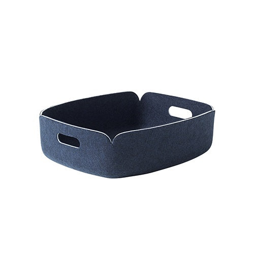 柔らかいフェルトの構造は、ユニークでありながら抑制した方法で新しい視点でこれまでになかったバスケットを作り出しました。レストアバスケットは、部分的に再生ペットボトルから抽出した繊維を使用して構成されています。いきいきとした表情と多彩なカラーバリエーションを備えたデザインは、教育施設やオフィス、待合に適したモダンなストレージです。
