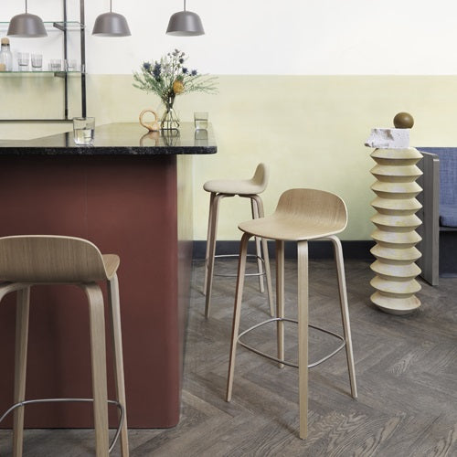 人間工学に基づいた機能的な形状のビスバースツールはタイムレスで人を惹きつけるデザインです。ベニヤ板をプレスした独特の形状で、フットレストは耐久性があり、バーやラウンジ、レストランに最適なスツールです。
