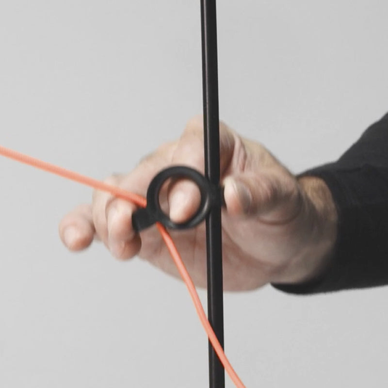 アイノコレクションの核ともいえるのが電源ケーブルによって弓状に張られたグラスファイバーロッドです。上下の2つの調整リングをスライドさせることで、グラスファイバーロッドのしなりを調整でき、必要な場所に光を向けることができます。