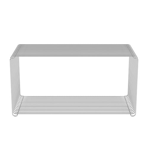 ワイヤーで構成されたブロックを組み合わせ、必要に応じたストレージを設けることができる収納システム、PantonWire(パントン・ワイヤー)。未来的なデザインは、スペースエイジ・デザインを代表するデザイナー、バーナー・パントンにより1971年に設計されました。線から成り立つブロックは、軽量で圧迫感がないだけでなく、納めたものを周囲から垣間見られる「魅せる収納」としての機能性も兼ね備えています。オプションの棚板や天板は、ブロックにサイドテーブルやローテーブルとしての機能を加えるだけでなく、木材やガラスなど異素材の質感をアクセントとして与える役割も担っています。