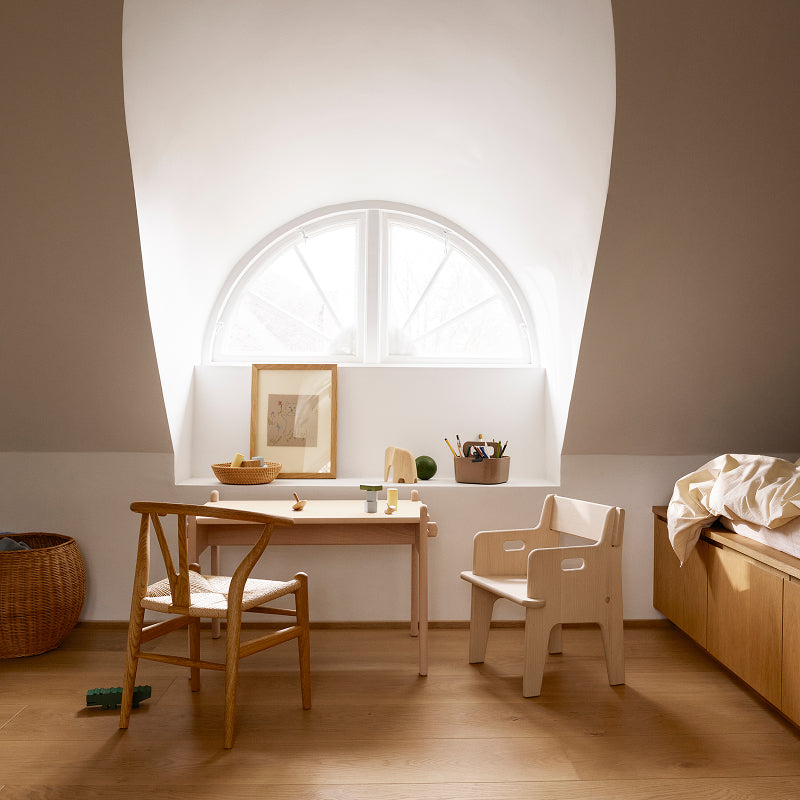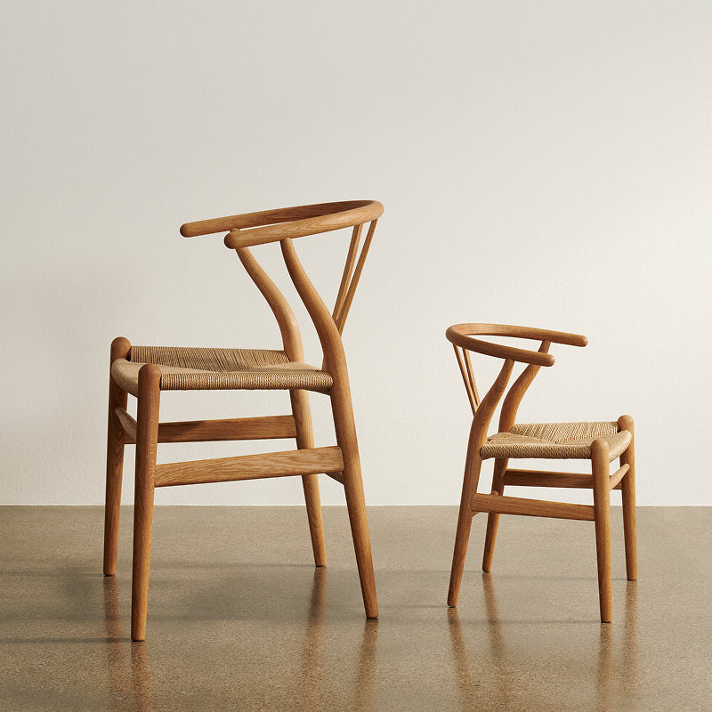 CH24 チルドレン・Yチェアは、デンマークを代表する巨匠ハンス・J.・ウェグナーが1949年にデザインした伝説的な「Yチェア(Wishbone Chair)」を3歳以上の子ども向けにサイズダウンしたモデルです。2024年4月2日のウェグナー生誕110周年を記念して初めて発表されました。
