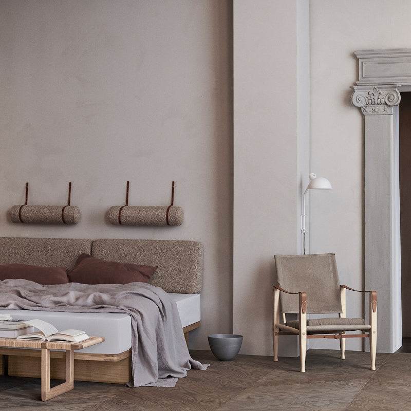KK47000 Safari Chair は、デンマークの建築家コーア・クリント (1888-1954) によって1933年にデザインされた、折りたたみ式のラウンジチェアです。英国軍に使用されたおそらく世界初とも言える、初期の組立て式の家具の一つ「Indian Roorkhee Chair」を元にしたものと推測されます。昔ながらの携帯式椅子を現代的で洗練された家具としてリデザインされた作品です。