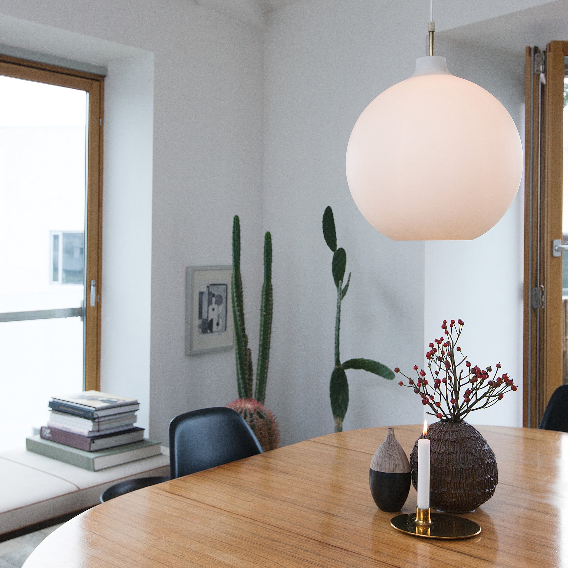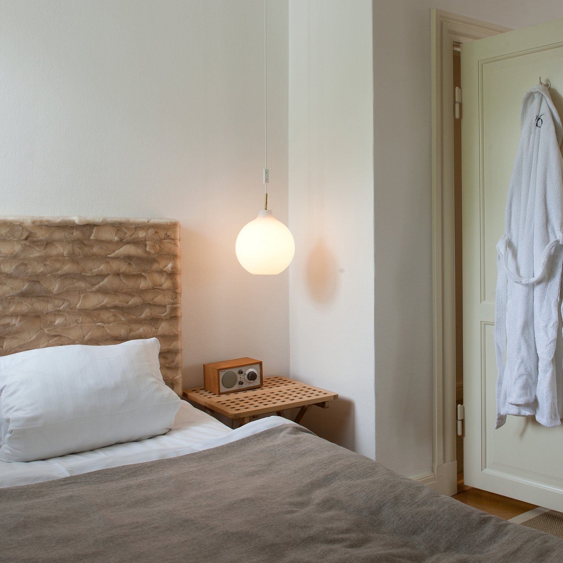 世界で最も素晴らしいアート・ミュージアムのひとつ、ルイジアナ美術館の設計で知られる建築家、ヴィルヘルム・ヴォラートが1959年にデザインし、以来半世紀近くにわたり住宅と公共建築の両方で活躍しているロング・セラー。柔かい拡散光を広げるマット仕上のガラスは、ひとつひとつが熟練工の手による三層吹きガラスでできており、あかりを消したときにも美しい表情を保ちます。