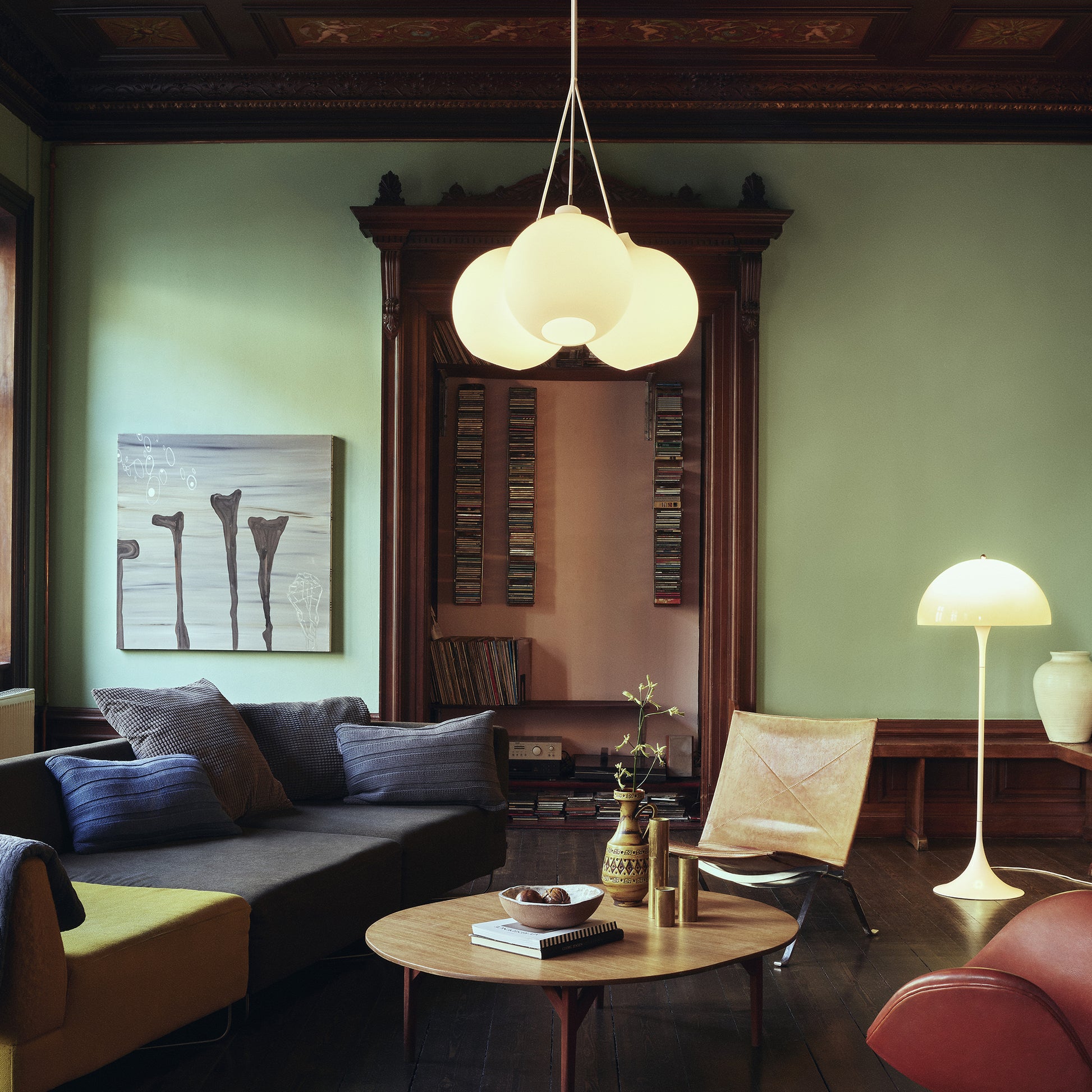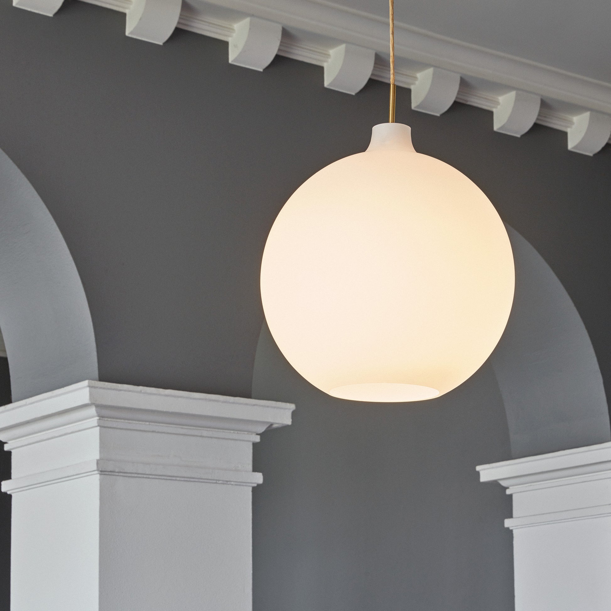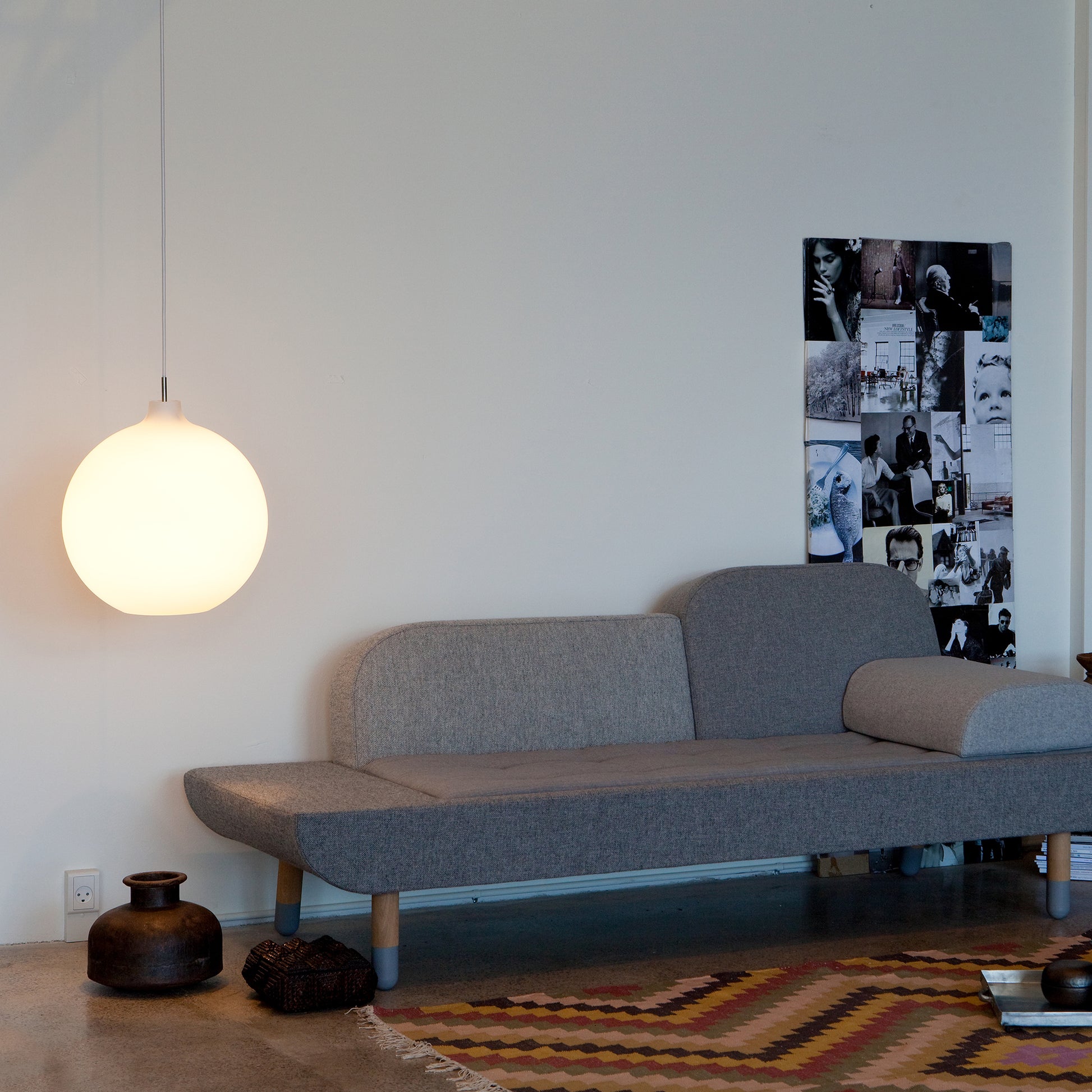 世界で最も素晴らしいアート・ミュージアムのひとつ、ルイジアナ美術館の設計で知られる建築家、ヴィルヘルム・ヴォラートが1959年にデザインし、以来半世紀近くにわたり住宅と公共建築の両方で活躍しているロング・セラー。柔かい拡散光を広げるマット仕上のガラスは、ひとつひとつが熟練工の手による三層吹きガラスでできており、あかりを消したときにも美しい表情を保ちます。