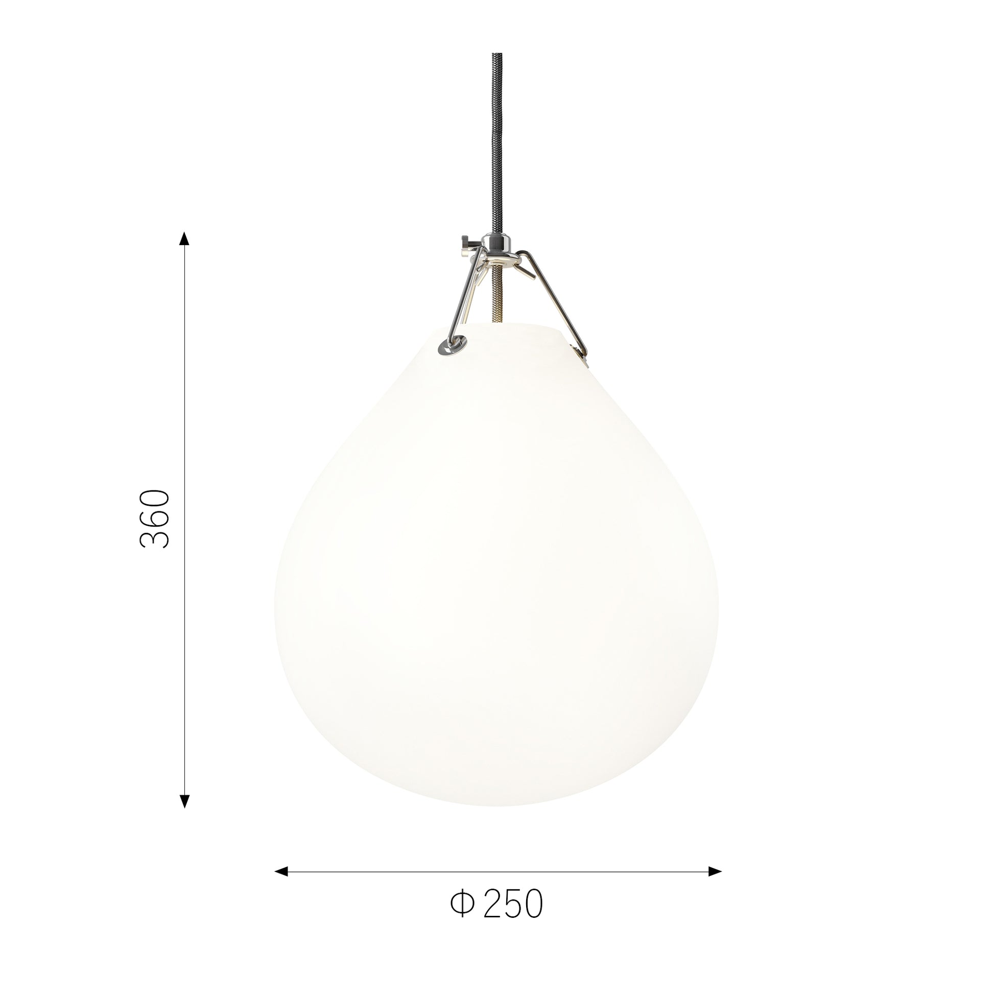 ガラスを吹きはじめたときに最初に出来上がるナチュラルなかたち「しずく」を思わせるフォルム。三層の吹きガラス製のグローブは、電球を包み込み、光を柔らかく拡散します。