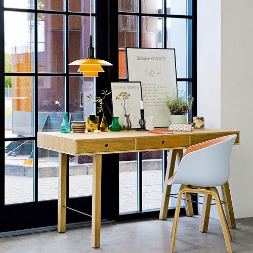 ポール・ヘニングセンの120回目の誕生日を記念して発売された、このPH 3 1/2-3 ペンダントは、1920年代から30年代初頭の、ポール・ヘニングセンのオリジナル設計図にもとづいて製作。そのデザインは、「3枚のシェードを使ったPHランプ」のアイディアを忠実に再現しています。