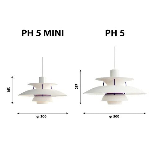 直径50cmの定番モデルと、直径30cmのミニモデルの2種類。PH 5は一灯でも効率よく広がる柔らかな光でお部屋を照らします。PH 5miniは小型化したことで複数並べやすくなり、高さを変えて吊るす多灯吊りも楽しみやすくなりました。豊富なカラーを組み合わせれば、様々なインテリア空間に調和する美しさを演出できます。