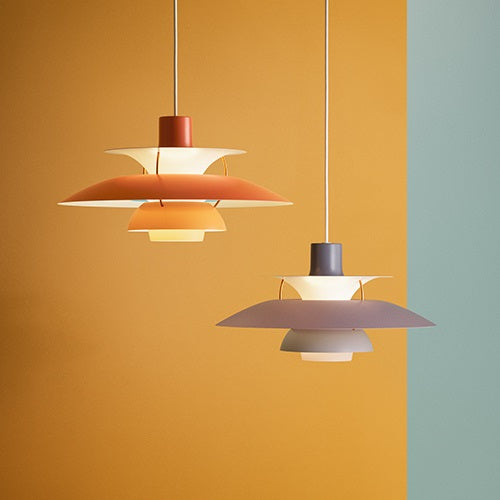 直径50cmの定番モデルと、直径30cmのミニモデルの2種類。PH 5は一灯でも効率よく広がる柔らかな光でお部屋を照らします。PH 5miniは小型化したことで複数並べやすくなり、高さを変えて吊るす多灯吊りも楽しみやすくなりました。豊富なカラーを組み合わせれば、様々なインテリア空間に調和する美しさを演出できます。