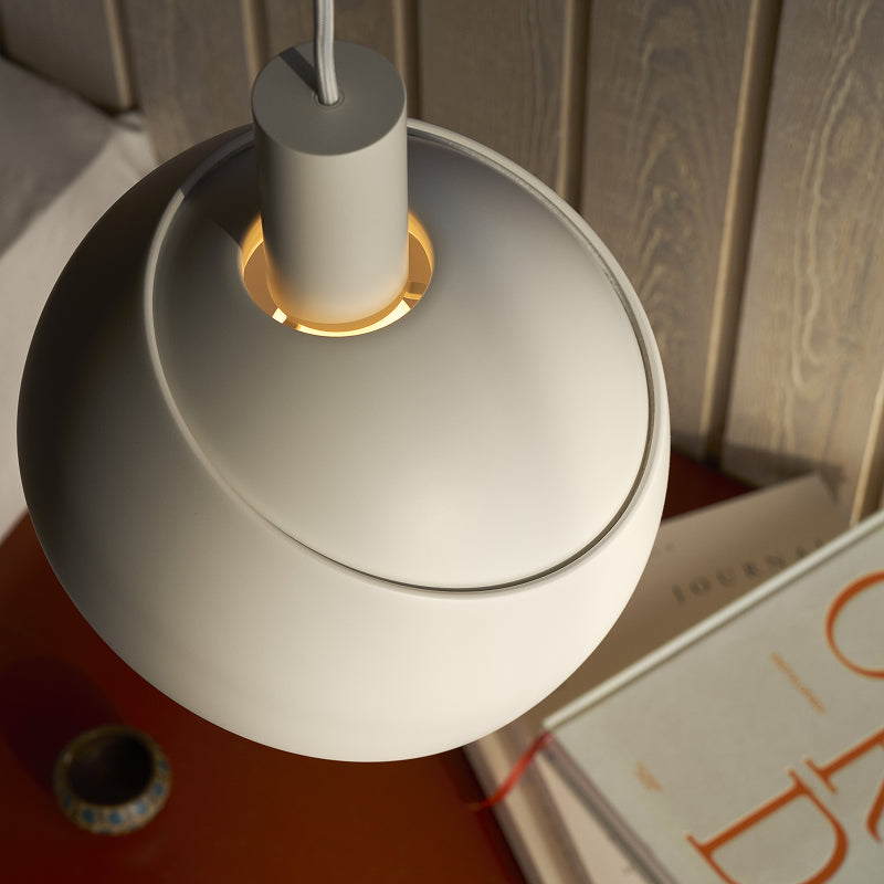デンマークを代表する建築家フィン・ユールが手掛けたこのランプは、1963年のデザインをもとに2025年にやわらかなグレーカラーで復刻されました。上下に連なるシェードが、そっと重なり合いながら、くるりと回転して光の角度や表情を自由に変えてくれます。シンプルな素材と可憐なラインの中に、フィン・ユールらしい遊び心と優しい創造力が息づいています。下方向のやわらかい灯りと、ディフューザーによるまぶしさの少ない心地よい光が、空間に穏やかな時間をもたらします。