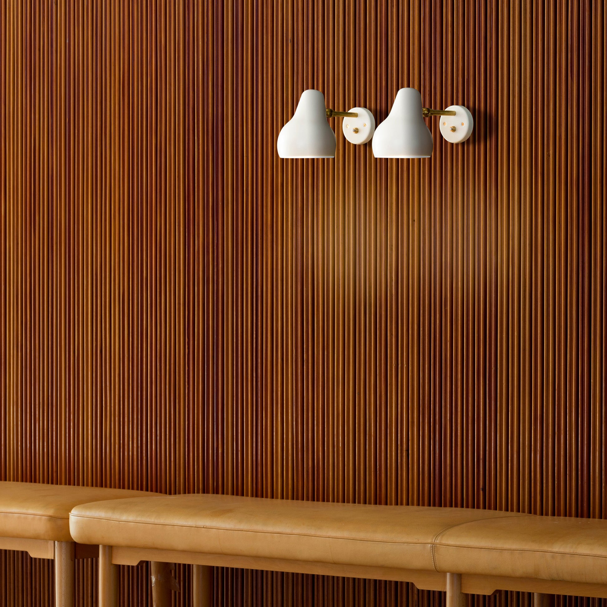 ヴィルヘルム・ラウリッツェンの照明器具、VL38は、1930年代後半にデンマーク国営放送局「ラジオハウス」のために設計された照明シリーズです。VL38の個性的なシェード・フォルムは、ラウリッツェンらしいデザインの典型です。オリジナルのホワイトと真鍮の美しい組み合わせは、時代を超えるデザインです。後年追加されたブラック・ヴァージョンではデザインにモダンさが加わり、プライベートな場所だけでなく、ライブラリーなどのパブリック・スペースでもより使いやすいシリーズとなっています。
