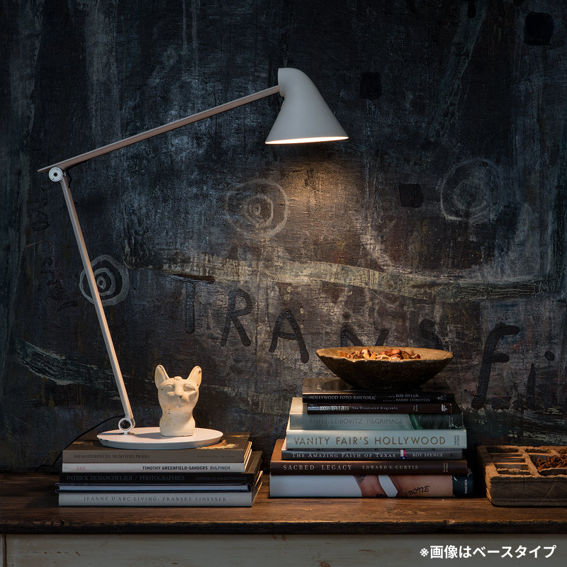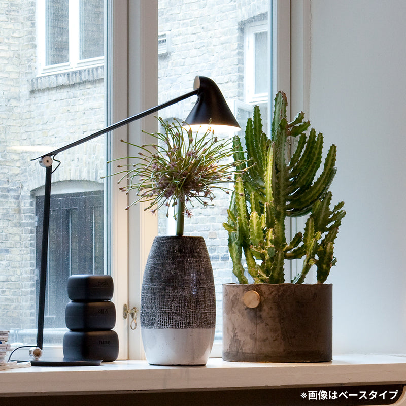 NJPテーブルは、佐藤オオキ氏が率いるデザインオフィスnendoとルイスポールセンのコラボレーションにより、グレア・フリー配光(眩しさを見せない照明)、ワークライトとしてのフレキシビリティー、そして柔らかい間接光が簡潔なデザインで表現されたタスクライトです。2018年新色のアルミ・グレーは、オリジナルのブラックとホワイトの続編で、金属のクールさとグレーの柔らかい温かさを兼ね備えるカラーです。