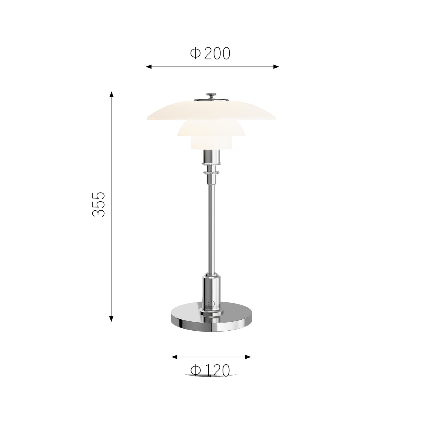 PHランプシリーズの名前に冠された数字は、シェードのサイズを表しています。つまり、カテゴリが違えどPH 2/1のシェード部分の直径は全て同じ20cmです。見た目もそっくりな有線テーブルモデルとポータブルモデルですが、充電池を収める分、ポータブルの台座は少し厚みがあり、高さもわずかに大きいことがわかります。
