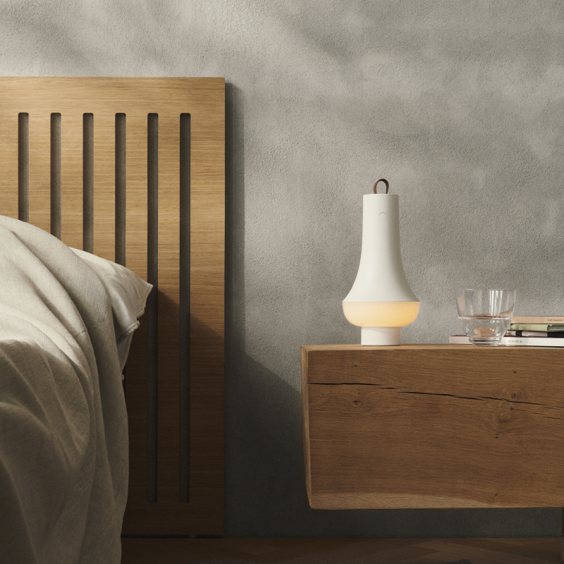Tomoshi(トモシ)は、日本語の「灯し」から着想を得た小型ポータブルランプです。デザインを手がけた佐藤オオキが目指したのは、光を持ち運び、光と共に暮らすこと。固定式の照明と異なり、ポータブルライトがプライベートな時間・空間を作り出すことに着目し、トモシのデザインに反映しています。ひとたび灯せば、ルイスポールセン伝統のソフトでグレアフリーの光が広がり、周囲にほのかな明かりで区切られた、パーソナルなスペースを演出します。