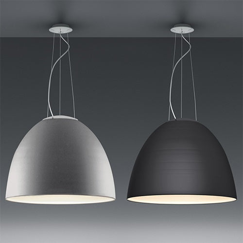 ヌールは、単一素材のユニボディが存在感を誇示するペンダントライト。幾何学的に調整された放物線は、明るさを損なうことなく放射を制御し、絶妙に光源を隠しています。 間接放射のおかげで、アンビエントライトとして周囲の明るさも一定確保することができます。