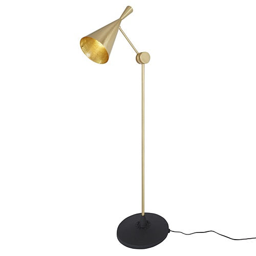 Tom Dixon(トム・ディクソン)の代表作の一つ「BEAT(ビート)」コレクション。インドで古くから伝わる真鍮の成型技術に着目してデザインされています。機械化が進むインドの中でも約4日の時間をかけ、職人によってハンドメイドされるシェードは、製造過程でできる、うろこ状の打痕(beat)にちなんでビート・ライトと名付けられています。その形状に一つとして同じものはなく、細かいゆがみや個体差は、製作時の環境によって作り出される天然のフィンガー・プリントと言えます。点灯すると、ビートの凹凸が真鍮の輝きに豊かな表情を与え、きらびやかな輝きを放ちます。