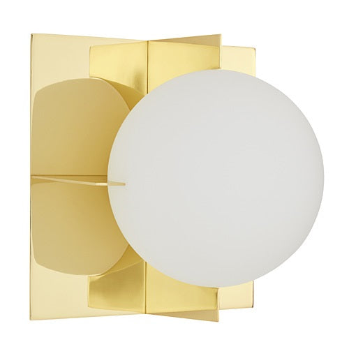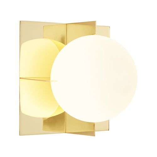 真鍮メッキを施した金属製フレームと、二層構造になった白色ガラスで出来た球体から構成される照明のシルエットは、幻想的な視覚効果を産み出します。