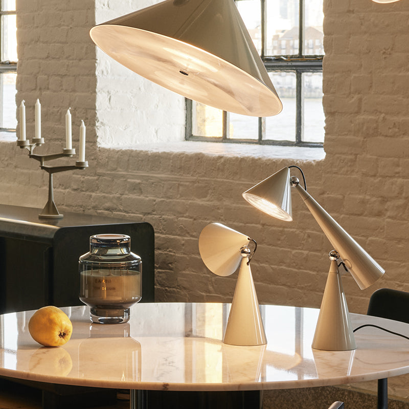 POSE PORTABLEは、円錐形のフォルムを基調にしたミニマルなデザインと実用性を兼ね備えたポータブルライトです。 灯具にはフレネルレンズを採用し、反射光を灯台の光のように遠方まで届けます。 クラシックなタスクライトを思わせる愛らしいデザインで、力強さとユーモアが同居するシルエットが魅力です。