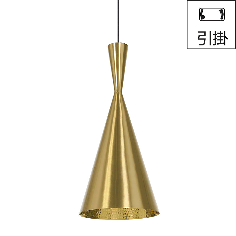 Tom Dixon(トム・ディクソン)の代表作の一つ「BEAT(ビート)」コレクション。インドで古くから伝わる真鍮の成型技術に着目してデザインされています。機械化が進むインドの中でも約4日の時間をかけ、職人によってハンドメイドされるシェードは、製造過程でできる、うろこ状の打痕(beat)にちなんでビート・ライトと名付けられています。その形状に一つとして同じものはなく、細かいゆがみや個体差は、製作時の環境によって作り出される天然のフィンガー・プリントと言えます。点灯すると、ビートの凹凸が真鍮の輝きに豊かな表情を与え、きらびやかな輝きを放ちます。