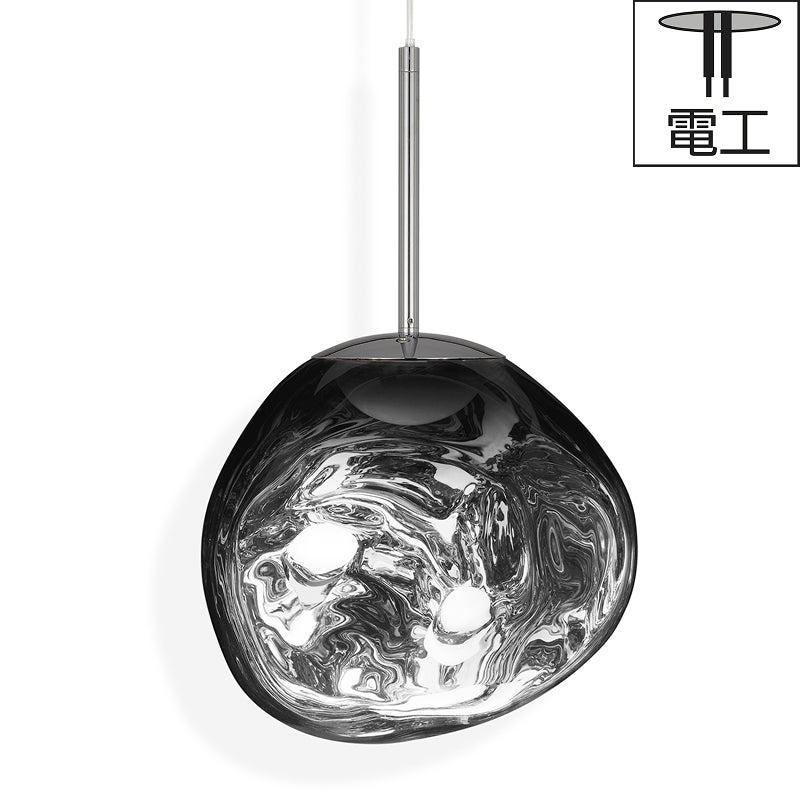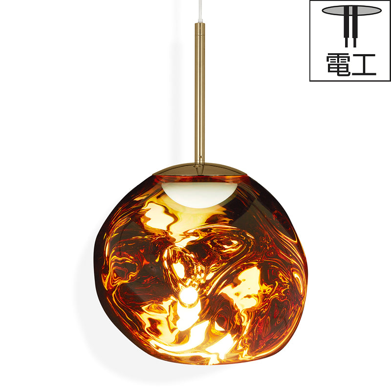 Tom Dixon(トム・ディクソン)の代表作「COPPER SHADE」ライトに”ひねり”を加えて進化させたコレクション「MELT(メルト)」。溶鉱炉で熱せられ膨らむ、吹きガラスの一瞬を切り取ったような、幻想的なフォルムが印象的な照明です。シェードはポリカーボネート製で、消灯時には鏡面加工された金属のように周囲を写し込み、点灯するとガラスのように透き通り柔らかな光が溢れるメタライズ加工が施されています。その姿はまるで固体が液体へと溶け出していくような錯覚を感じさせる独特なもので、空間に非日常的系な美しさを演出します。LEDシリーズではトム・ディクソン独自開発の内蔵型LEDユニットを採用。電球タイプよりシェード全体に光が行き渡ることで、溶け落ちるような視覚効果が強調されています。