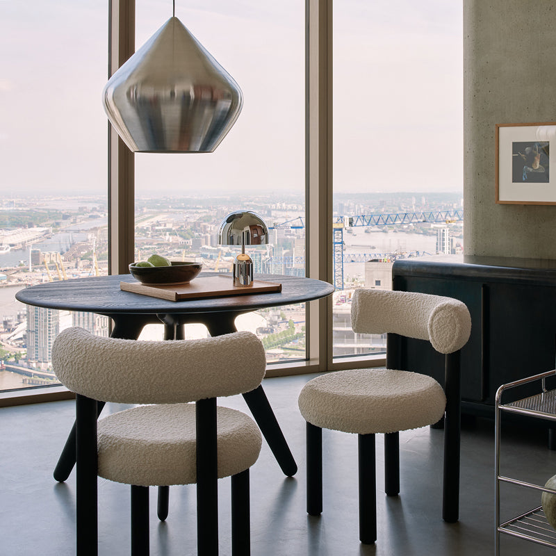 UNBEATEN(アンビートゥン)は、トム・ディクソンの代表作BEAT(ビート)のアンチテーゼとして発表されたシリーズです。世界中で大量の粗悪なコピー品が流通していることに対し、「叩かない(UNBEATEN)」という名前の通り、こちらは旋盤加工によってビートのデザイン・シルエットを再現しています。プレス加工によって成形されたコピー品とは異なり、加工の手法は変っても「ハンドメイド・クラフト」の精神が引き継がれています。