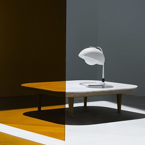 向かい合った大小2つの半球で構成されるシェードから溢れる光と斬新で大胆なフォルムはミッドセンチュリーの代名詞とも言えるデザイン照明であると同時に、現代においても色褪せることのないモダンライティングとして、飲食店や商業空間など、世界中の様々な空間を美しく彩っています。フラワーポットランプは、1960年代後半、ベトナム反戦を訴えた「フラワーパワー運動(武器ではなく花を)」の時代的アイコンとなり世界中に広がります。