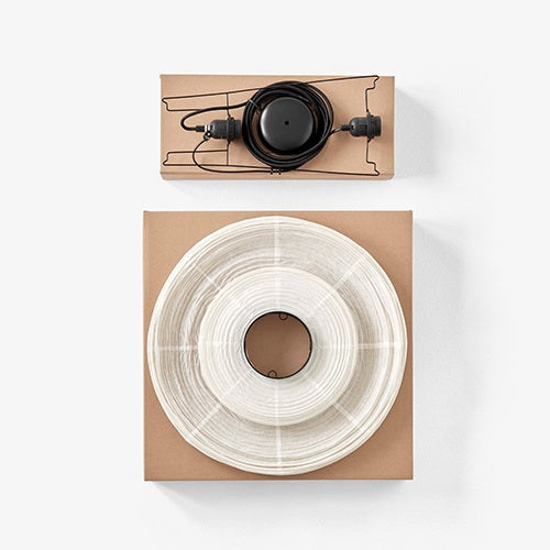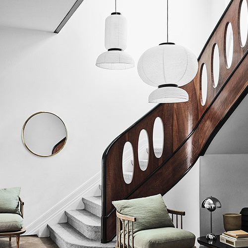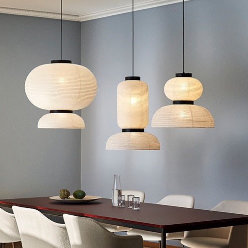 ハイメ・アジョンは現代的な表現で伝統的なアジアのランタンにデザイナーの目線からモダンなひねりを加えることで、東洋と西洋のエッセンスの融合を表現したデザインに仕上げました。提灯はアジアで長きに渉って使用され、そしてその地域や文化によってさまざまなカタチ、大きさ、カラーが存在し、貴族から大衆まで貧富の差に関係なく、照明器具として発展してきました。さまざまな大きさや形を組み合わせたシェードは職人が一枚一枚丁寧に紙を骨組みに貼り付け制作しています。このシリーズは、3種類の異なる提灯タイプと、ブラックステイン・オークのアクセントが付いたアイボリーホワイトペーパーを使ったテーブルランプで構成されています。